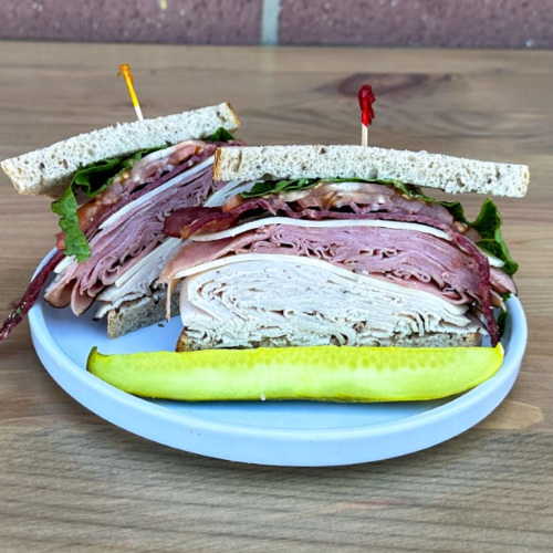 Choose any Two of Our Premium Deli Meats, Add Two of Your Favorite Cheeses, and Top It Off with a Selection of Our Freshest Toppings. Served with Two Signature Pickles on the Side. This Sandwich Isn't Just a Meal—It's a Declaration of Cleveland Spirit.