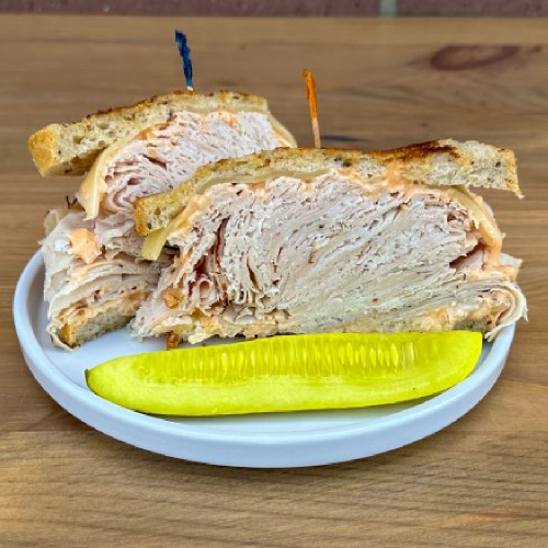 Turkey Ham, Coleslaw, Pepper Jack Cheese, and Ballpark Mustard Served Grilled on Rye